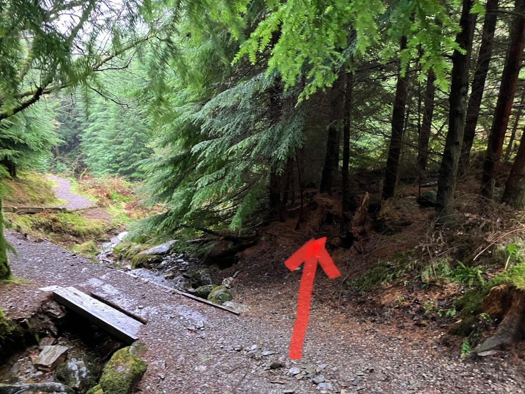 The first control is quite hard to find. It’s just off the path in a clump of fir trees; a few metres north of the stream junction, and a few metres west of the tiny footbridge.