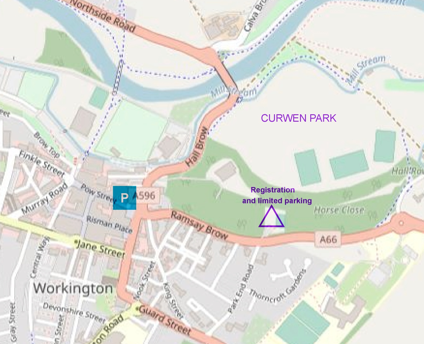 Registration will be in the car park on the south side of Curwen Park, off the A66. http://www.wcoc.co.uk/pages/CurwenParkParking.jpg